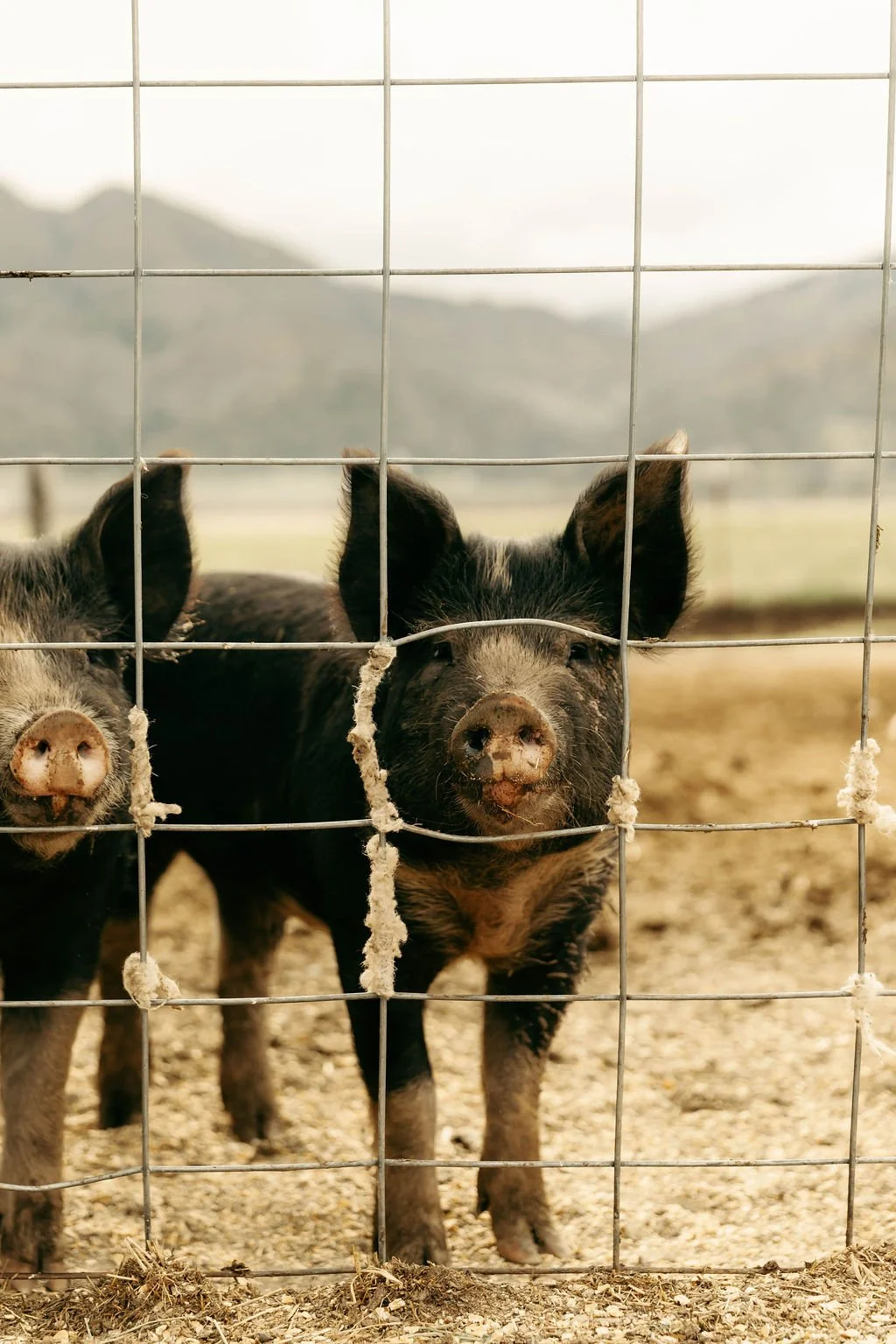 Now pigs are something that I said I would never have. But what do you know.. one day they made their way home and my husband was setting up shelters for them, ha! Our pigs are not bred on the ranch, but they are sourced from family. Jon’s sister and brother in law raise such high quality hogs and are prop 12 certified. They are farrowed out with plenty of room and once they are at weaning age, they make their way to our ranch. Once at our ranch they are raised out on open pasture ground. This allows them the necessary space for growing. rooting the ground, and movement. Overall it just makes them a happier and healthier hog. Our hogs do not receive any vaccines, antibiotics, or growth hormones, just home-grown feed and sunshine. The hogs are grain finished for approximately 180 days.
